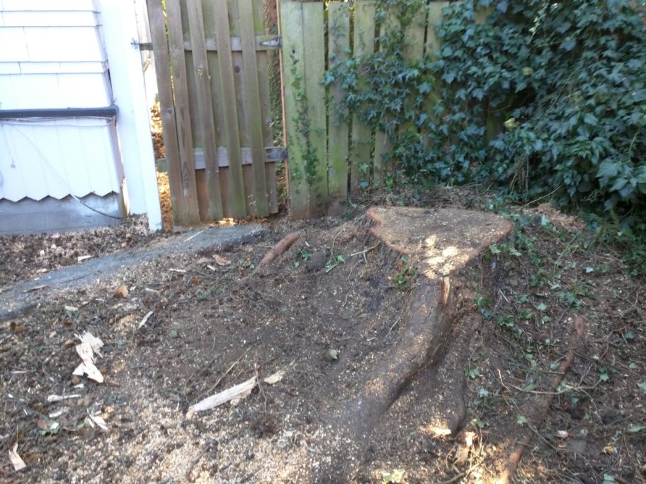 The location of this stump impeded the use of our client’s backyard gate. When they decided that it had to go, they called us to grind it away.
